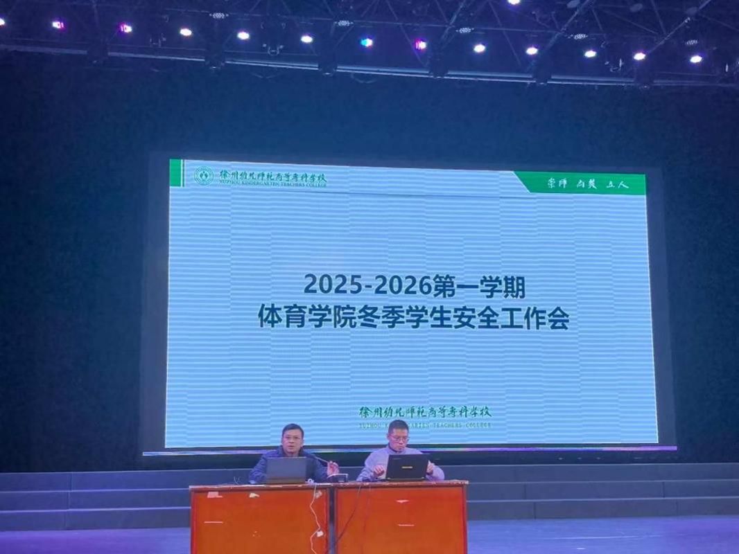 为加强学生安全教育,提升安全防范意识,部署冬季校园安全工作,体育学院于2025年12月8日晚在洞山演播厅召开冬季学生工作会议。体育学院党总支书记田国祥、副院长闻年富、党总支副书记刘东亮、各班辅导员、班主任及学院全体学生参加会议,会议由刘东亮主持。