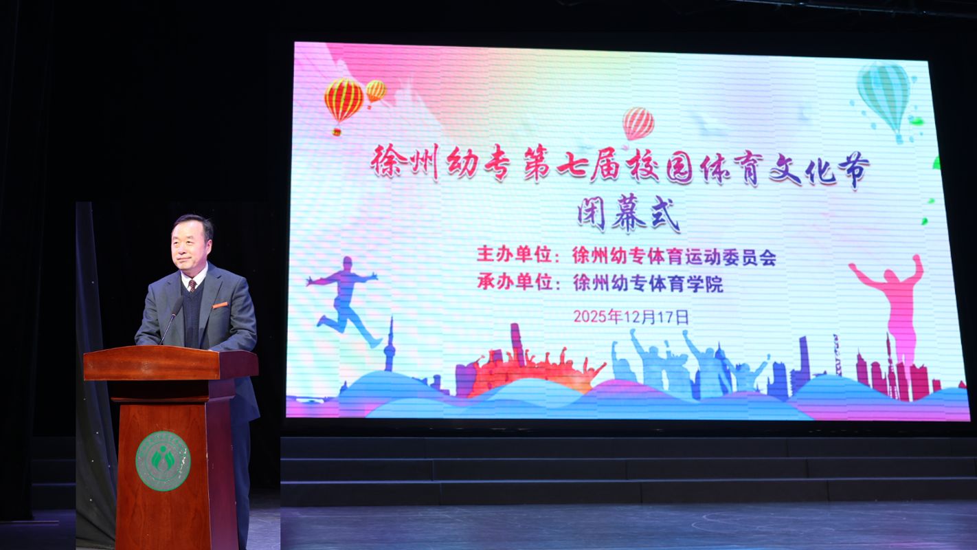 2025年12月17日下午,徐州幼儿师范高等专科学校第七届校园体育文化节闭幕式在洞山演播厅隆重举行。校党委委员、体育运动委员会主任、副校长邓宪亮,校体育运动委员会副主任、学工处处长陈繁,体育学院党总支书记田国祥、院长李海芸,以及各学院副书记出席了本次活动,与师生代表共同见证了这一体育盛事的圆满收官,为历时两个月的体育文化盛宴画上了圆满的句号。
