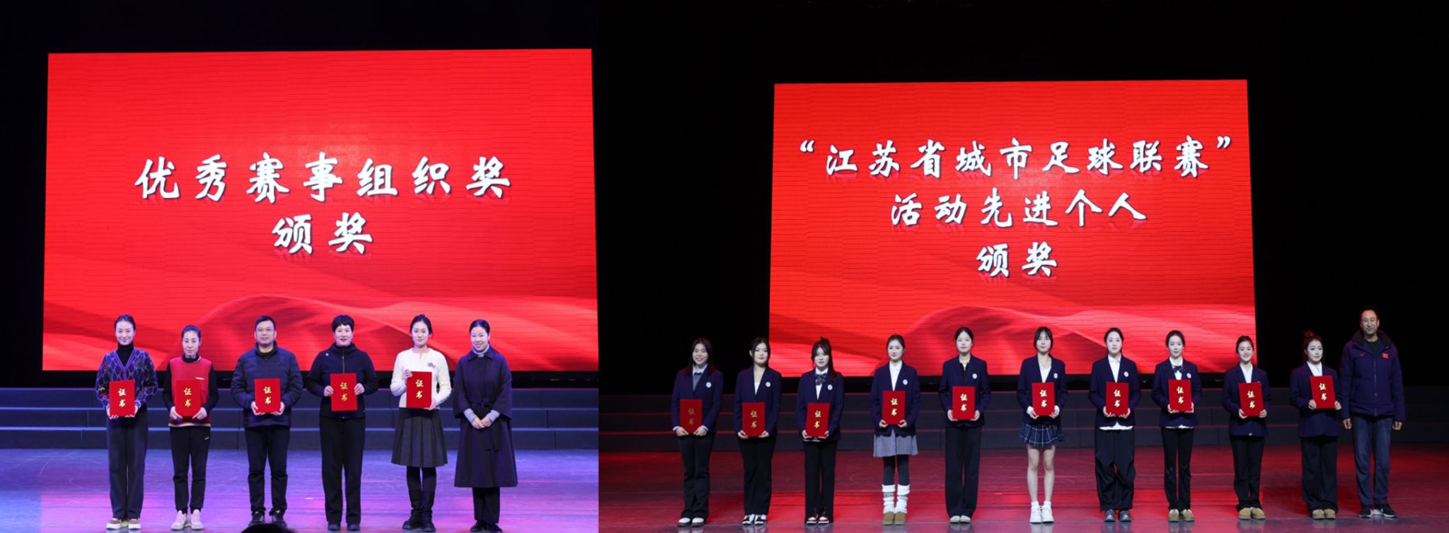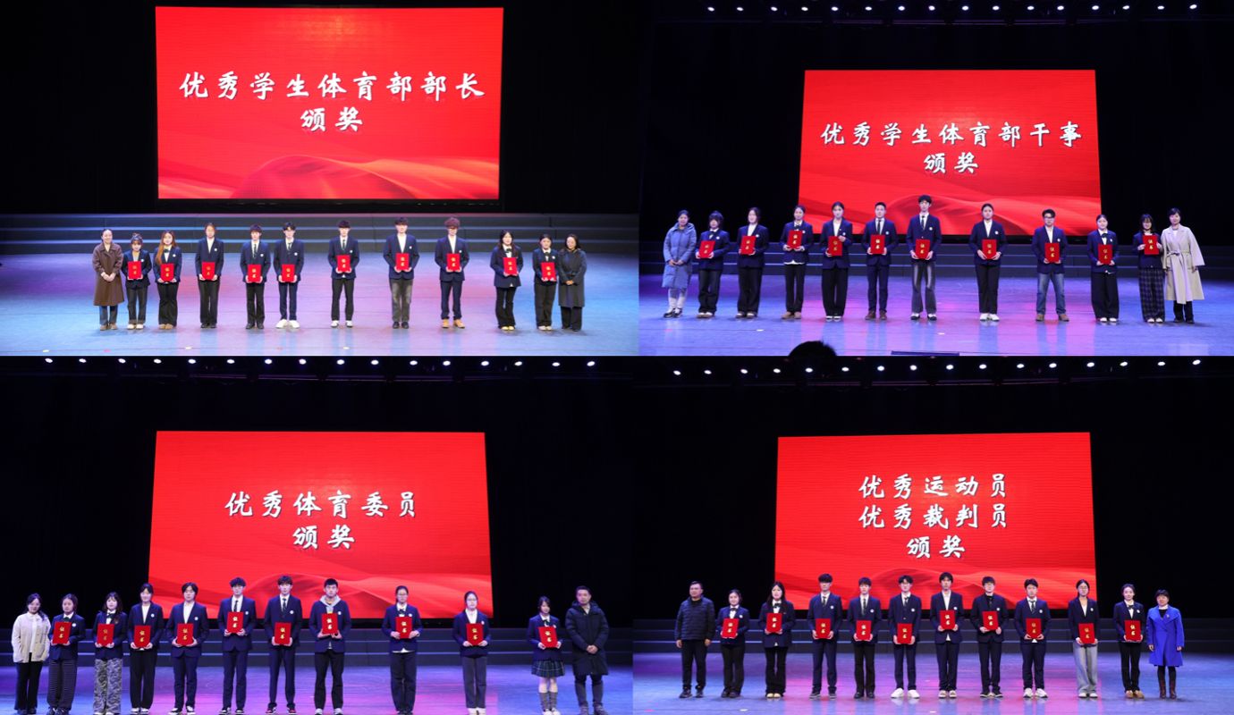 随后进行的颁奖仪式将闭幕式推向高潮。依次颁发了“优秀学生体育部部长” “优秀学生体育部干事”“优秀体育委员”“优秀运动员”“优秀裁判员”“优秀赛事组织奖”“‘苏超’志愿服务优秀个人”“体育道德风尚奖”“团体总分奖”等多个奖项。获奖师生依次上台,接受表彰与掌声,展现了徐州幼专人昂扬向上、勇于争先的精神风貌。颁奖环节穿插了由学生社团精心准备的健美操、爵士舞、拉丁舞等文艺表演,动感的节奏、精彩的演绎,充分彰显了青春活力与职教特色,赢得了现场阵阵喝彩。