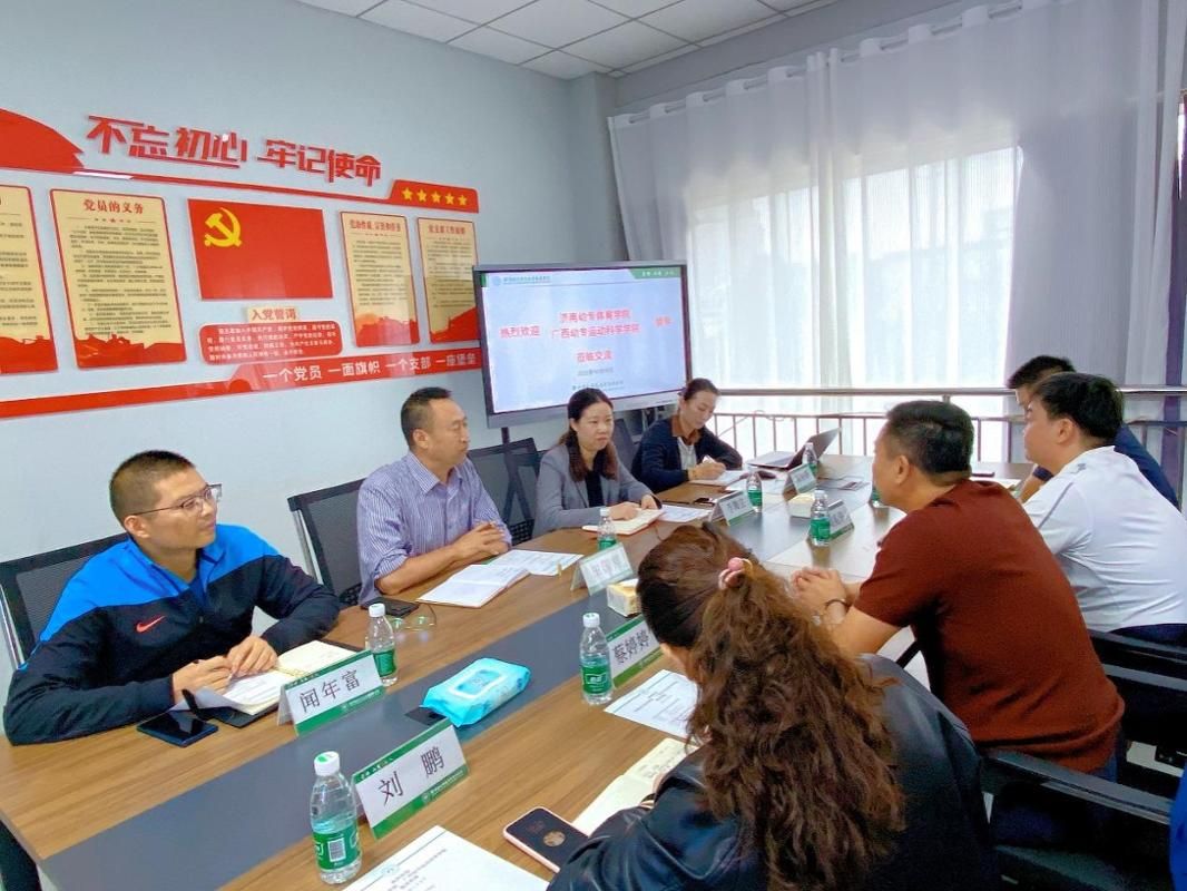 张春波、刘宪伟分别对我院发展中取得的成果给予了高度肯定,并分别分享了济南幼儿师范高等专科学校体育学院、广西幼儿师范高等专科学校运动科学学院办学现状、管理体制、人才引进、产教融合、科研成果、教学改革以及发展规划等方面的宝贵经验。双方均表示此次交流必将实现相互启发、携手共进。随后,共同围绕人才培养方案、课程设置与建设、教学资源库建设、学生比赛、校企合作、实习实训等方面的工作思路和举措展开了深入探讨与分析。