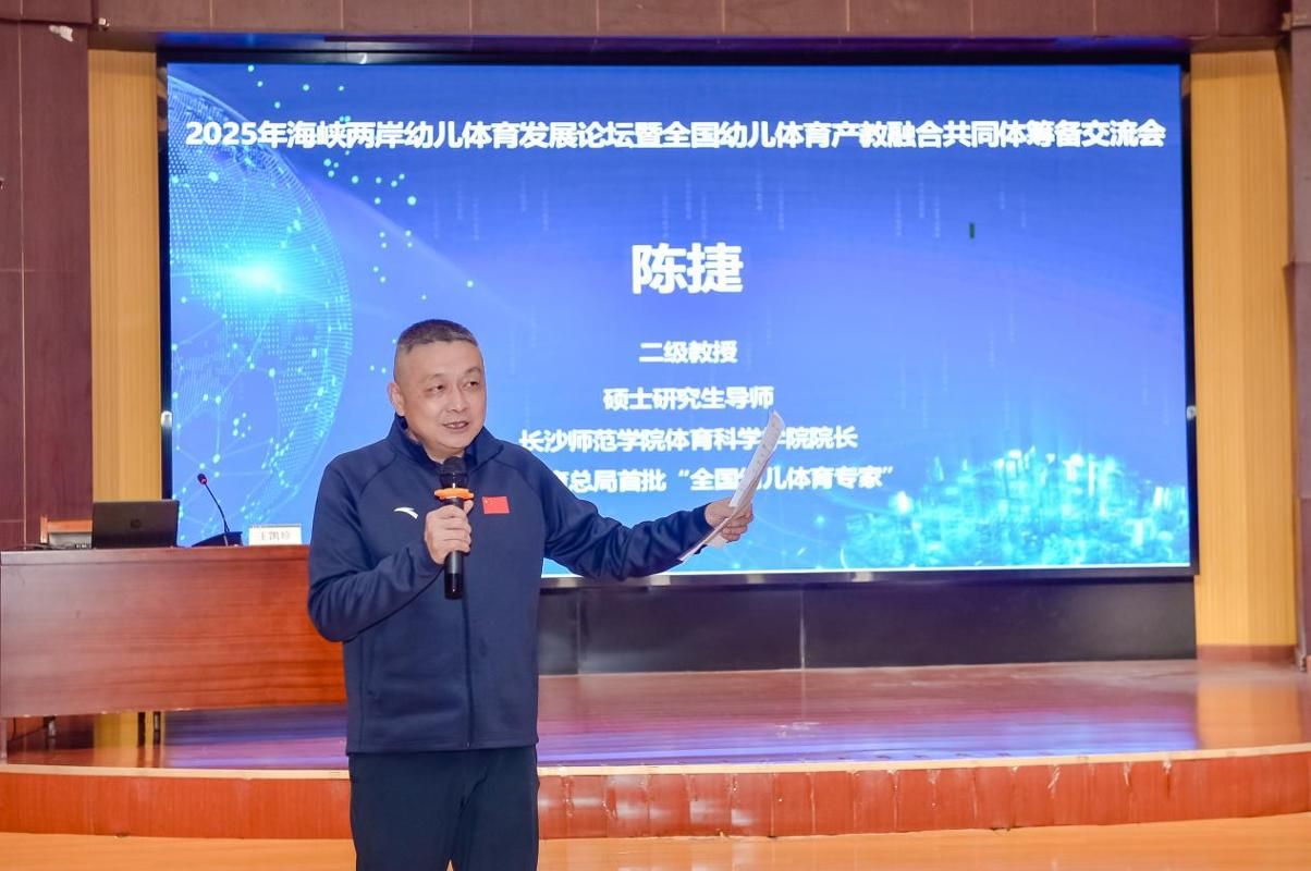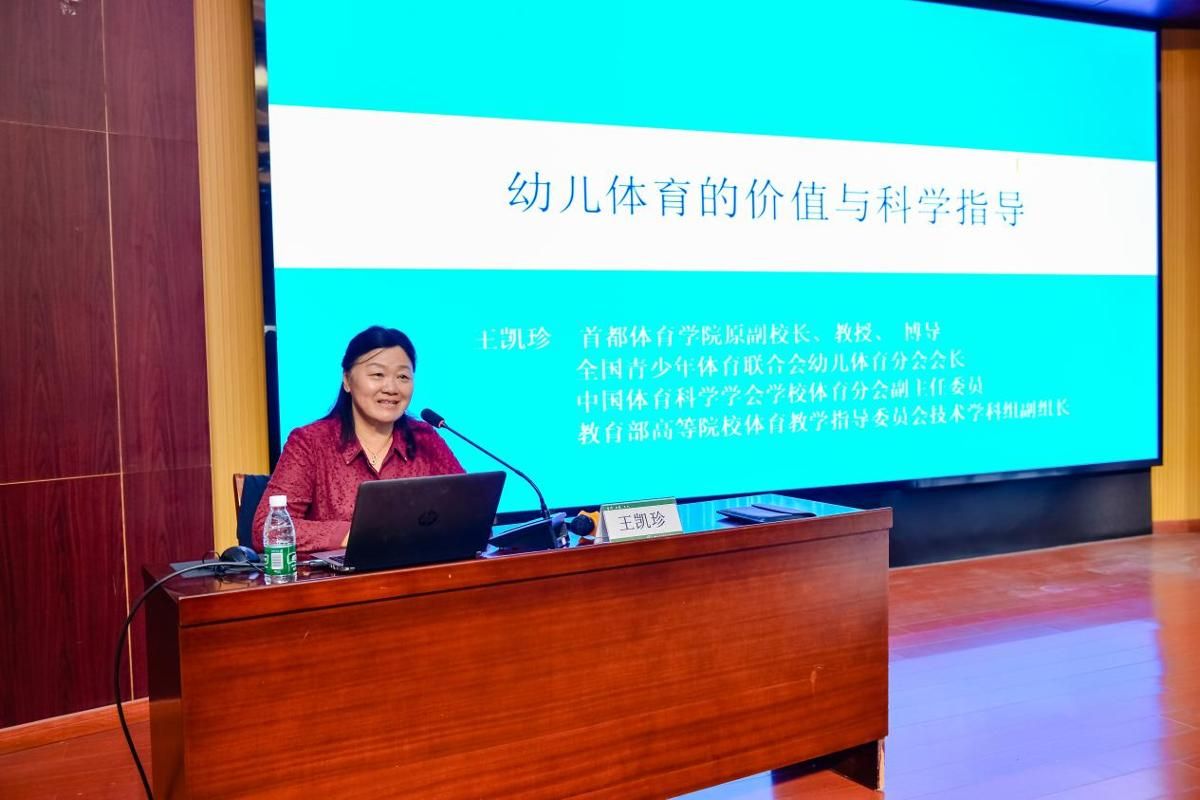 王凯珍教授在专家报告中深入阐述了幼儿体育的价值与科学指导方法,强调幼儿体育是促进儿童身心健康全面发展的重要途径,需要遵循幼儿身心发展规律,科学开展体育活动。黄靖惟教授以“幼儿运动游戏指导之理念”为题作主题报告,分享了台湾地区在幼儿体育领域的先进理念与实践经验,为海峡两岸幼儿体育交流搭建了桥梁。