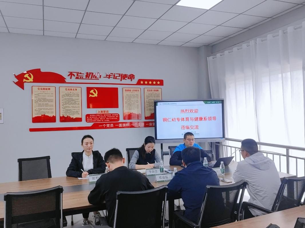 10月12日上午,铜仁幼儿师范高等专科学校体育与健康系副主任邓良标、教务科科长李明、学生科科长李仕洲一行莅临我院进行交流座谈。我院院长李海芸、副院长闻年富、体育教育专业教研室主任郭盼盼出席了此次交流会。会议李海芸主持。