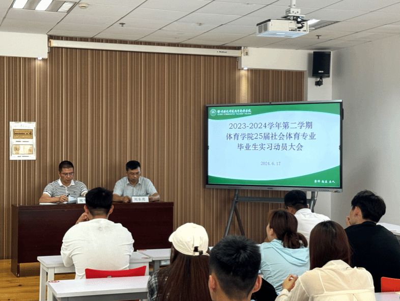 体育学院2025届社会体育专业毕业生于6月17日下午15:30,在继续教育学院415召开岗位实习动员大会,本次专业实习动员大会旨在为即将步入实习岗位的同学们提要求、明方向,强调注意事项,确保实习工作的顺利进行。副院长闻年富、副书记刘东亮及实习指导老师出席会议。会议由体育学院教学秘书孙艺侨主持。